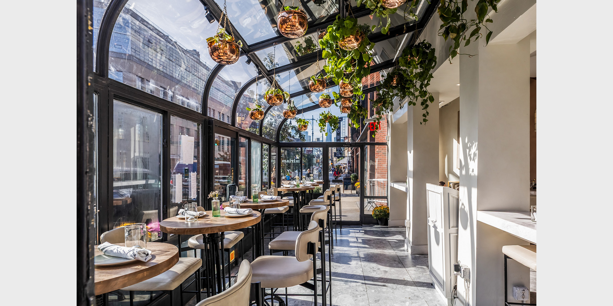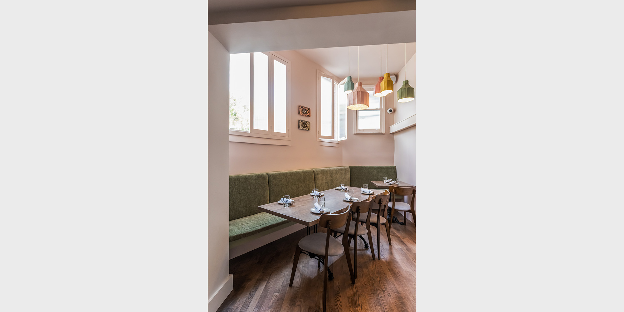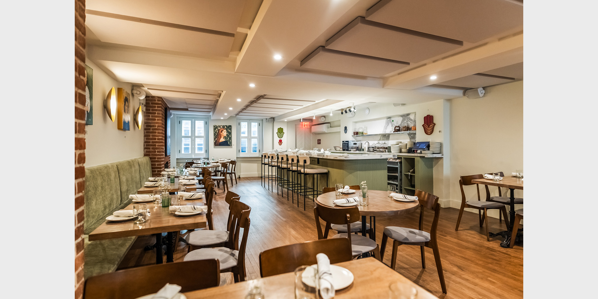 Following our work with chef Rafael Hasid, founder of owner of the beloved restaurant Miriam, on a new location in the Upper West Side and the renovations of the iconic original space in Park Slope, we were tasked with creating the 4th and largest venue for the Miriam family – a highly visible space in the heart of the West Village. The space is the result of a collaboration between Pliskin Architecture (panyc) and Sarit Holzmann, working closely with Chef Hasid to translate his culinary spirit into design. The result is a setting that feels both familiar and new – much like Miriam’s menu itself.